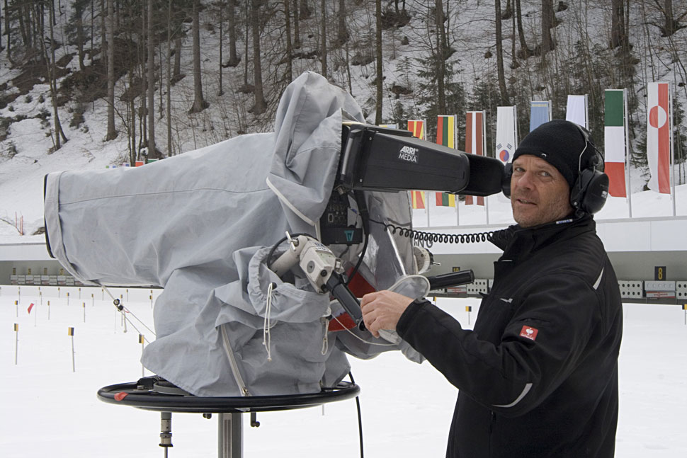 Biathlon kommt bei den Zuschauern gut an, und entsprechend aufwändig wird die Sportart mittlerweile produziert. Dabei gilt es, gleich mehrere Herausforderungen zu bewältigen. Zum einen findet Biathlon bei nahezu jedem Wetter statt, gleichgültig ob es regnet, schneit oder die Sonne scheint. Für die Kameras bedeutet dies, dass sie widerstandsfähig sein und bei extremen Wetterbedingungen und Temperaturen funktionieren müssen. Gerade bei den zahllosen Spezialkameras, die im Einsatz sind, ist das nicht immer ganz einfach.