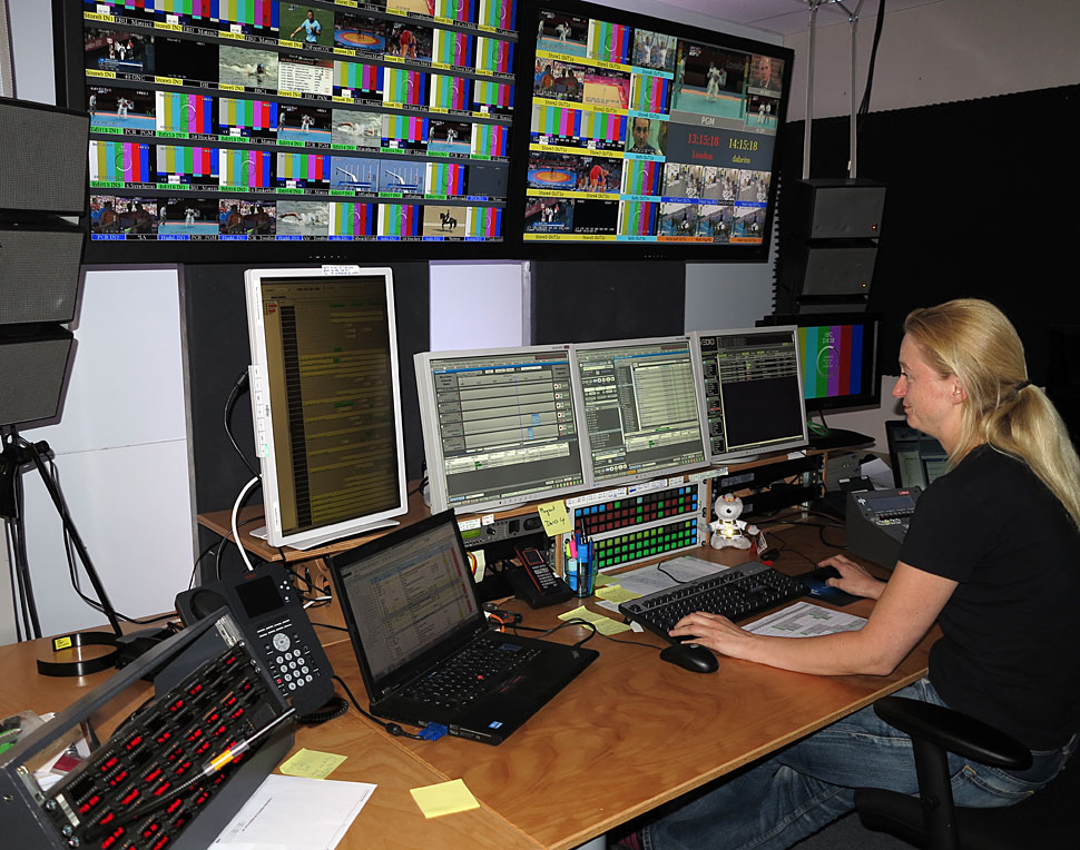 An den EVS-Schnittplätzen gab es erstmals auch eine Vertonungsmöglichkeit, erläutert Kristina Kirk, Videoingenieurin beim NDR. Diese Funktionalität des IP-Directormoduls IP Edit wurde gut angenommen und eignete sich im Zusammenspiel mit Jünger Mix 4 Pulten und RTW TM3s insbesondere für die Produktion von NIF-Beiträgen. Längere Zusammenfassungen wurden per IP-Director auf das Isis-Speichersystem und dann zum Fairlight-Audiopult gesendet. Neu im Einsatz waren außerdem das Web-Monitoring-Tool und Vedio von EVS, womit jederzeit eine Überwachung des Gesamtsystems wie auch der XML-Jobs der acht XT-Access Systeme stattgefunden hat.