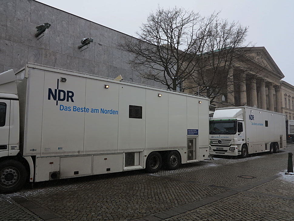 Für die ARD-Produktion war der NDR-HD-Ü-Wagen Ü1 vor Ort in Hannover, den der NDR seit nunmehr drei Jahren betreibt. Die SD-Produktion fürs Regionalprogramm realisierte der NDR mit dem SD-Ü-Wagen Ü3.
