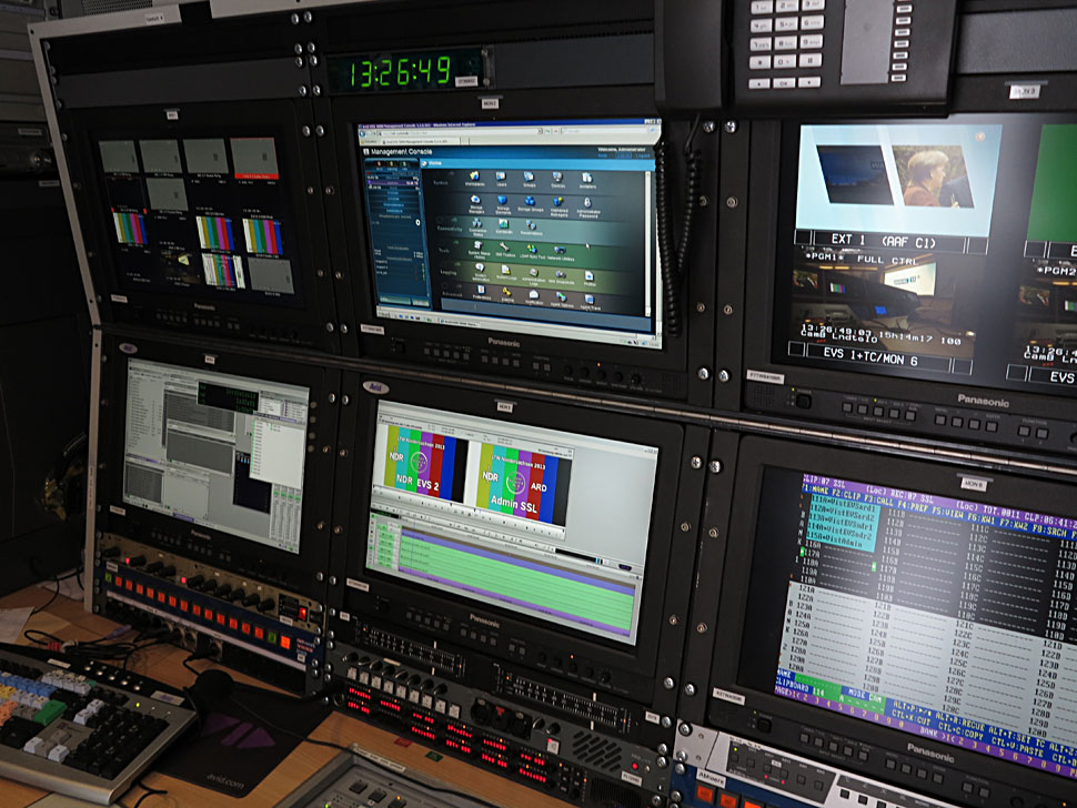 Ole Clausen, Technischer Leiter des NDR und verantwortlich für die Produktion, erläutert, dass eine der Herausforderungen darin bestand, die gemischte Produktion in SD und HD zu realisieren: »Das NDR-Studio haben wir in SD, das ARD-Studio in HD betrieben. Den kompletten Schnitt-, Aufzeichnungs- und MAZ-Komplex haben wir hingegen komplett in SD aufgesetzt.