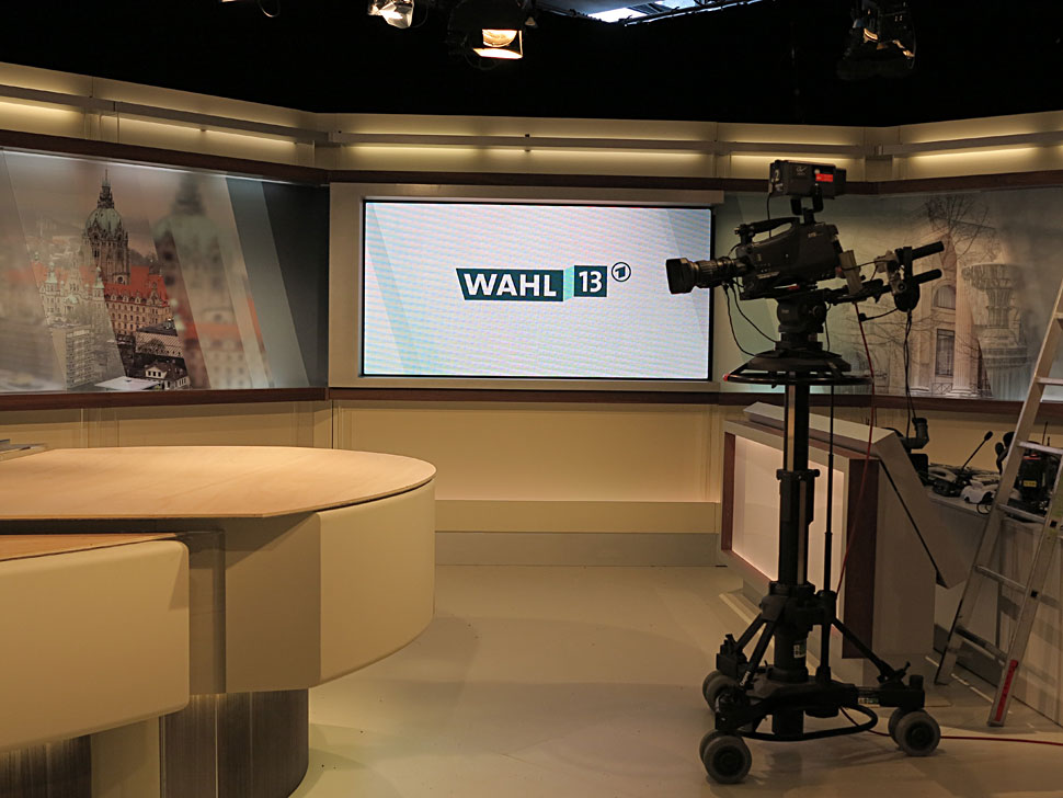 Die Wahlberichterstattung wurde in den vergangenen Jahren immer anspruchsvoller umgesetzt. Lutz Braune vom RBB hat gemeinsam mit dem ARD-Wahlen-Team um Jörg Schönenborn das Konzept der ARD-Wahlberichterstattung entwickelt und setzt es mit den jeweiligen lokalen Teams bei den Landtagswahlen wie in Niedersachsen um. »Wir bringen gewissermaßen den Schuhkarton mit, und die Kollegen des jeweiligen Senders liefern das schöne Paar Schuhe dazu«, beschreibt Braune die Idee des ARD-einheitlichen Konzepts für die Wahlberichterstattung der Länder.