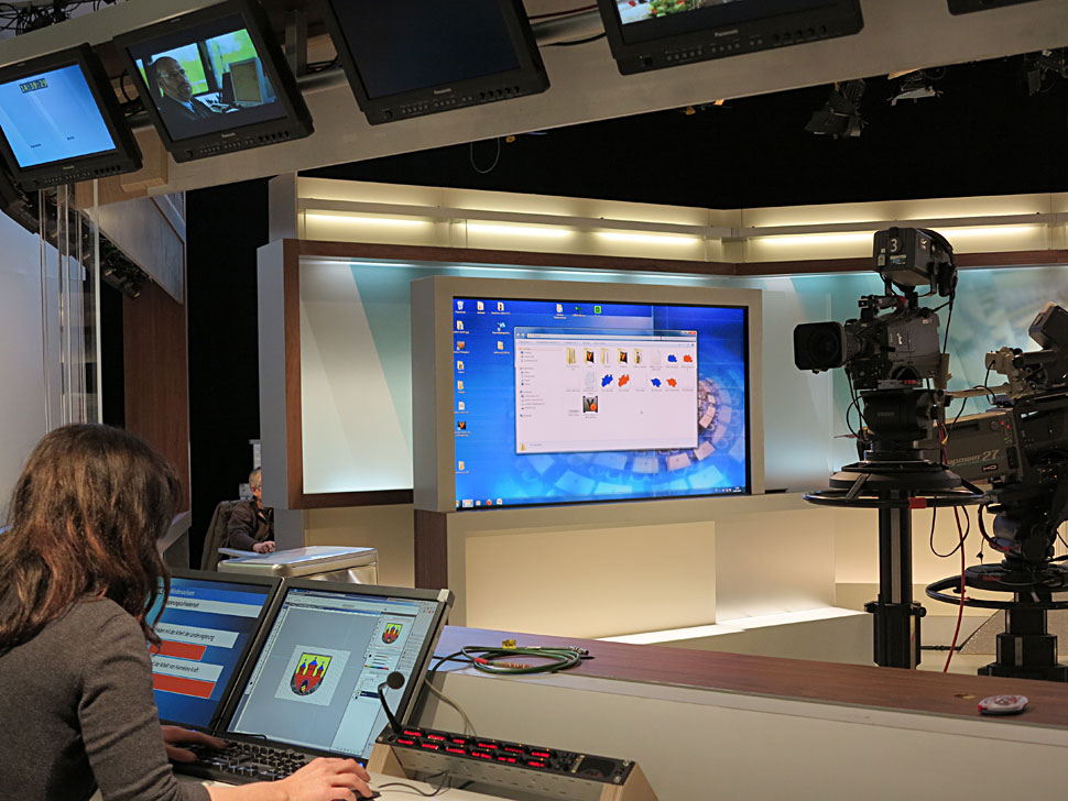 Touchpanels spielen bei Wahlen mittlerweile eine große Rolle, und für die ARD oblag es Jörg Schönenborn, die Grafiken per Wisch- und Tastgesten abzurufen. Die Kölner Firma Incas lieferte die Technik für das Touchpanel, das so aufgebaut und installiert war, dass Techniker eingreifen konnten, wenn der Moderator bestimmte Grafiken nicht auf Anhieb aufrufen konnte. »Mittlerweile sind die Moderatoren damit aber so versiert, dass wir kaum noch korrigierend eingreifen«, so die Techniker von Icas.