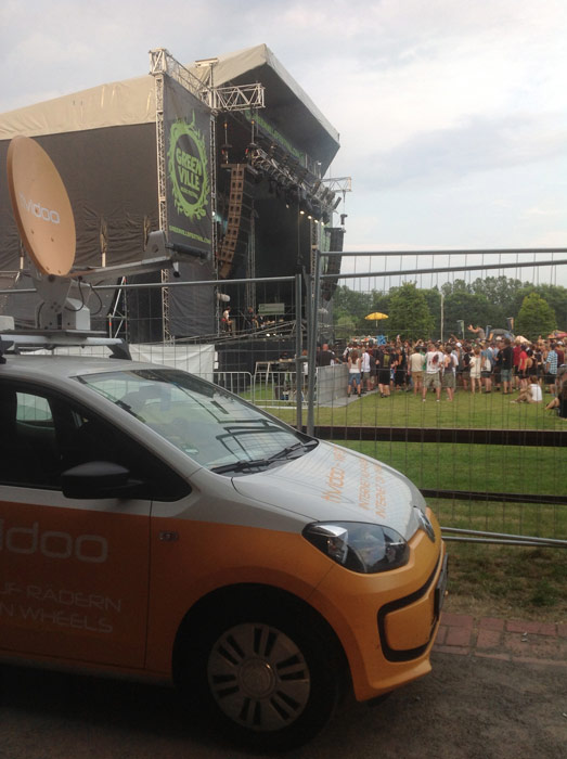 Speziell bei größeren Events, wie beispielsweise einem Musikfestival, kommt es oft zu Engpässen in der mobilen Datenübertragung, da der verfügbare Mobilfunk-Internetzugang bereits durch die Besucher des Festivals stark ausgelastet ist. Durch die Bündelung von Satellit und Mobilfunk bietet das Tividoo-Fahrzeug hier schnelles und nahezu überall verfügbares Breitband-Internet auf Rädern.