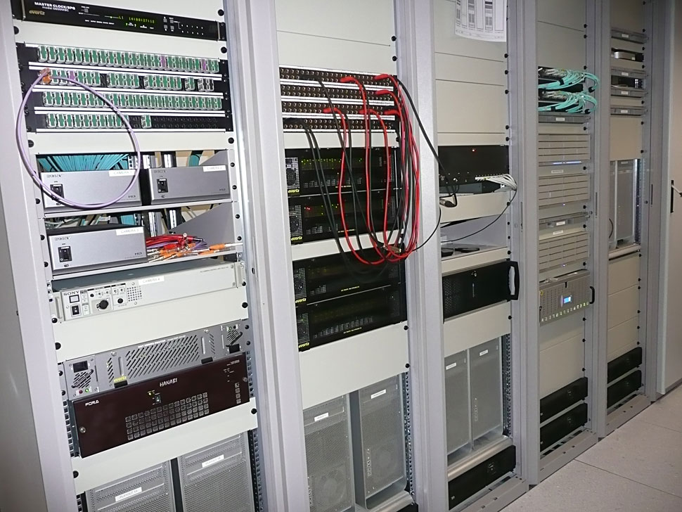 Im Studiobetrieb erfolgt die Aufzeichnung von Material automatisch auf zwei Server. Hier sind vierkanalige K2 Summit von Grass Valley im Einsatz. Diese Server werden gleichermaßen für den Live-Ingest, wie für den 24/7-Playout genutzt.