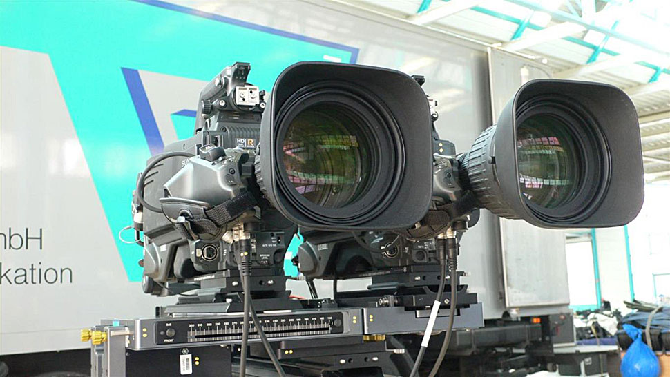 Für die Verarbeitung der Stereo-3D-Kamerasignale im TopVision-Ü-Wagen waren zehn MPE-200-Bildprozessoren von Sony inklusive Analyse-Software im Einsatz. Zoomen über den gesamten Brennweitenbereich war jederzeit mit jedem Rig möglich, das Ergebnis überzeugte alle Beteiligten.
