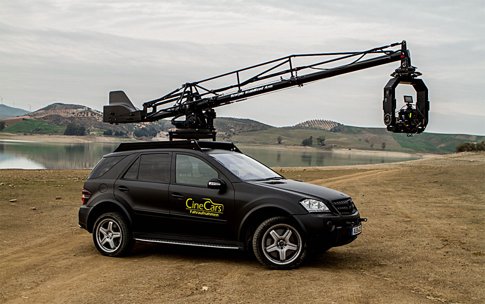 Im Dezember 2015 begannen die Umbauarbeiten an einem besonderen Kamerafahrzeug, das die Firma CineCars aus Bad Aibling nun bereits einsetzt: Das Basisfahrzeug, ein Mercedes ML63 mit 510 PS, wurde von Servicevision in Barcelona mit einem Scorpio-Arm ausgestattet.