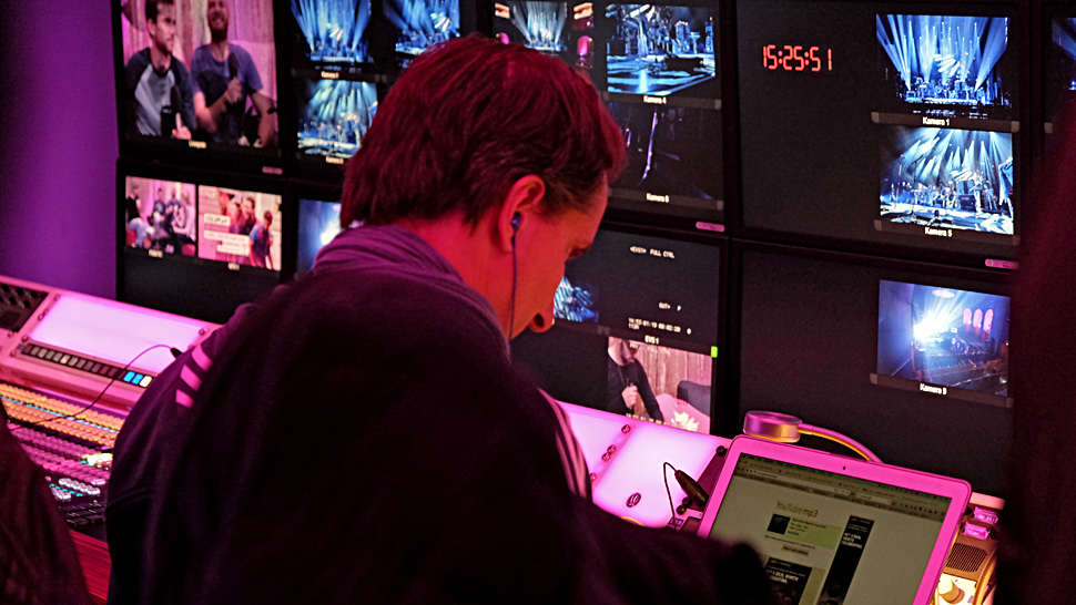 Vor und nach dem Konzert galt es Moderationen und andere visuelle Elemente für die verschiedenen Auswertungen aufzuzeichnen.