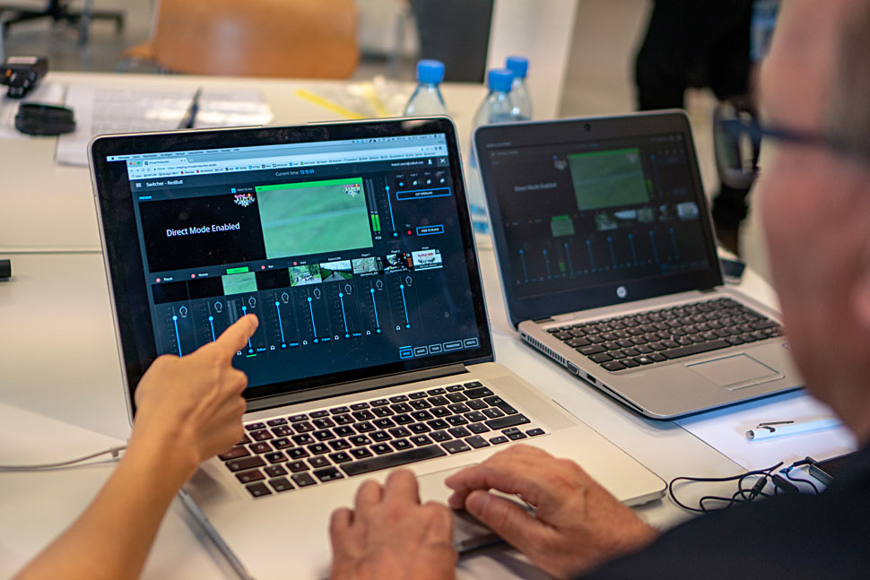 Im Production Office in Sarnen konnte eine Mitarbeiterin über die Oberfläche der Virtual Production-Lösung auf die Kamerasignale zugreifen und daraus den Livestream schneiden, der parallel zum Rennen auf Youtube übertragen wurde.