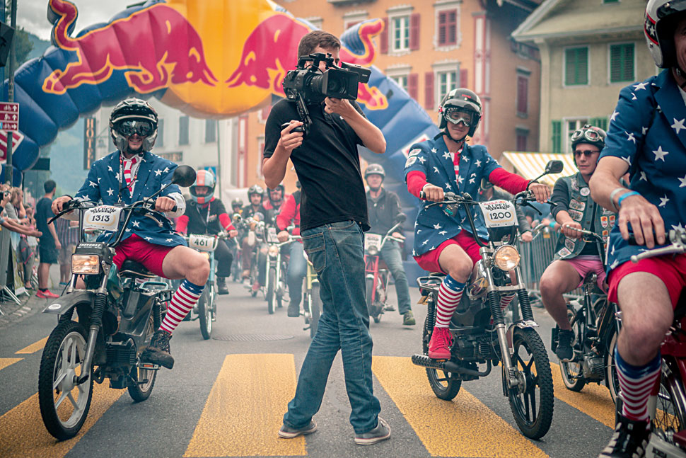 Der Alpenbrevet-Rundkurs startete in diesem Jahr in Sarnen. Red Bull setzte für die Live-Produktion sechs Sony-Kameras ein, darunter die PXW-X200, die PXW-Z90 und die kompakte Action-Cam FDR-X300. Einige davon waren fest an vorher definierten Punkten des Rundkurses installiert, eine auf einem Verfolger-Motorrad und natürlich gab es auch Handkamera-Bilder beim Start und inmitten der Zuschauer. Eine Tallyfunktionalität bietet das Virtual Production System aktuell noch nicht. Beim Alpenbrevet nutzen die Kameraleute daher eine Handy-Intercomlösung von Unity Intercom.