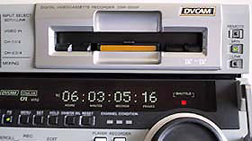 Mit dem DSR-2000 hat Sony die DVCAM-Recorder-Palette am oberen Ende ergänzt: Dieser Studiorecorder soll höchste Ansprüche erfüllen, er bietet programmierbare, schnittfähige Zeitlupen-Wiedergabe (Bereich –1 bis +1fach), Preread-Editing und eine breite Auswahl an Anschlussmöglichkeiten, die sich mit Optionen noch erweitern lässt. Der DSR-2000 spielt alles ab, was es an DV-Formaten gibt, sogar DV-Longplay-Aufnahmen und das alles auch noch ohne Adapter in allen drei Kassettengrößen: Standard- und Mini-Kassetten im DV- und DVCAM-Format, aber auch Large- und Midsize-Kassetten des Panasonic-Formats DVCPRO. Aufgenommen wird beim DSR-2000 aber immer im DVCAM-Format – dem Sony-DV-Derivat für Profis, das neben breiteren Videospuren und einer höheren Bandgeschwindigkeit auch im Tonbereich einen Unterschied zu DV aufweist: bei DVCAM wird der Ton im Locked-Audio-Modus aufgezeichnet.