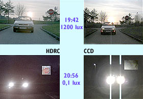 Wie das menschliche Auge arbeitet auch der HDRC-Chip logarithmisch. Dadurch kann er einen Kontrastumfang erfassen, der die Fähigkeiten des menschlichen Auges erreicht und sogar überschreitet. Zwei Beispiele machen besonders plastisch, wie groß der Unterschied zur CCD-Technologie ist: