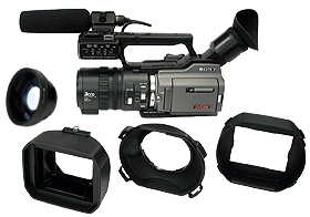 Um beim Objektiv — das gleich geblieben ist — mehr Flexibilität zu bekommen, legt Sony dem PD170 Zubehör bei: Neben der Standard-Sonnenblende gibt es eine hochwertige aufschraubbare Weitwinkel-Vorsatzlinse und eine dazu passende Sonnenblende mit integrierter Objektivklappe. Ein einfacher und praktikabler Zwischenschritt zum Einsatz eines meist recht teuren Kompendiums.