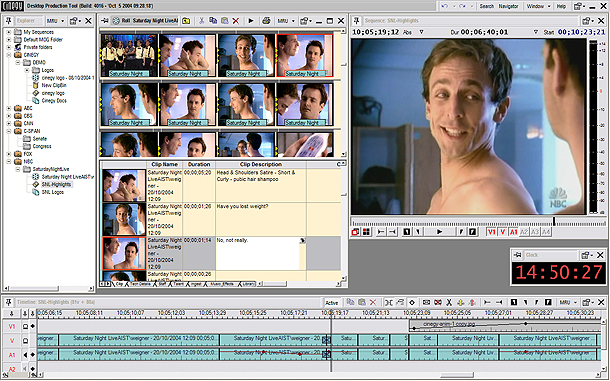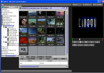 Redakteure oder Mitarbeiter, die unterwegs sind, können mit Hilfe des Cineweb-Internet-Zugangs auf das System zugreifen. Einmal eingewählt, öffnet sich dem Anwender die gleiche Oberfläche wie in der Arbeit mit dem Desktop-Production-Tool. Man kann ebenso nach bestimmten Inhalten suchen, eigene Sequenzen schneiden und sich das gewünschte Material auf diese Art markieren und anfordern. Lediglich Timeline-Editing ist übers Web nicht möglich.