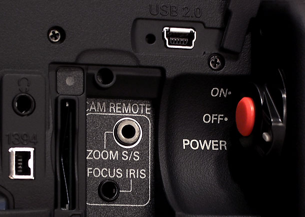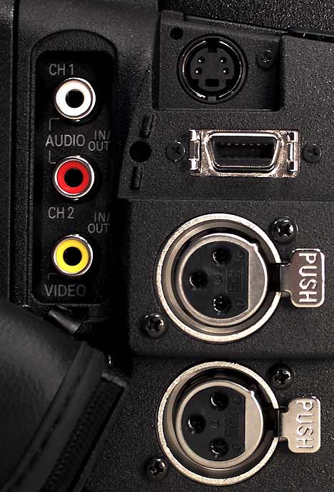 Recht spendabel war Panasonic bei den Anschlüssen: Für den Anschluss eines externen Mikrofons stehen zwei XLR-Buchsen zur Verfügung. Bild und Ton kann der HVX200 über verschiedene Buchsen ausgeben. So gibt es eine Cinch-Buchse für ein FBAS-Bild und zwei weitere Cinch-Buchsen für Stereoton. Sehr löblich, dass sich Panasonic hier nicht für eine kombinierte AV-Spezialbuchse entschieden hat, wie sie mittlerweile viele Camcorder bieten, um Bild und Ton analog auszugeben. Weiter bietet der Camcorder auch eine Y/C-Buchse, die als Aus- und auch als Eingang beschaltet ist. Über eine Komponentenbuchse ist es mittels Spezialkabel möglich, die aufgezeichneten SD- oder HD-Signale via Komponente auszugeben. Zusätzlich gibt es natürlich auch eine IEEE-1394-Buchse, über die der HVX200 DV- und DVCPRO-Signale ausgeben kann. Außerdem können über diese Schnittstelle auch externe Diskrecorder wie etwa der FireStore FS-100 angeschlossen werden. Last but not least: Über die integrierte USB-2-Schnittstelle lässt sich das P2-Laufwerk im HVX200 von einem angeschlossenen PC wie ein externes Laufwerk nutzen – vorausgesetzt, man hat die Treiber installiert, die Panasonic auf CD mitliefert.