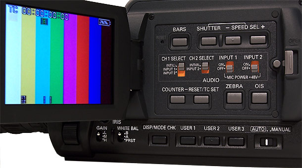Auch eine für die Sucher und Display-Darstellung zuschaltbare Kantenaufsteilung (EVF Detail) hat der Hersteller nicht vergessen. Dennoch bleibt besonders im HD-Modus beim manuellen Fokussieren eine Restunsicherheit, die man nur mit einem größeren, separaten Schirm mit höherer Pixelzahl eliminieren kann.