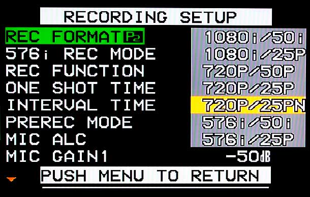 Wie die professionelle Varicam von Panasonic kann auch der AG-HVX200 in <LEX>720p</LEX> (und nur in dieser Auflösungsstufe) mit unterschiedlichen Frame-Raten aufzeichnen. Was bringt das? Auf diese Weise lassen sich, wie schon erwähnt, Zeitlupen- und Zeitraffer-Aufzeichnungen realisieren – und das mit tatsächlich veränderter Bildrate schon während der Aufnahme und nicht erst durch elektronische Tricks bei der Wiedergabe — wie mit einer Filmkamera.