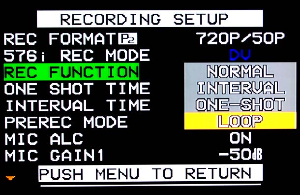 Nützlich ist die Pre-Record-Funktion, die im Profibereich schon länger bekannt ist und die auch der HVX200 bietet: Die Kamera nimmt in dieser Betriebsart endlos auf, sobald man auf den Auslöser drückt, bleiben im HD-Modus drei Sekunden, in SD sechs Sekunden der Ereignisse gespeichert, die vor dem Auslösen passiert sind — und der Camcorder läuft ab dann im normalen »Record«-Betrieb weiter. In eine ähnliche Richtung geht die Loop-Recording-Funktion, die dafür sorgt, dass in einer Endlosschleife Material auf die beiden P2-Karten des HVX200 aufgezeichnet wird. Ist die eine Karte voll, wird auf die nächste geschrieben, ist diese voll, wird die erste Karte wieder überschrieben.