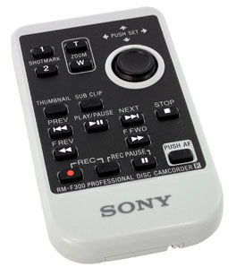 Die Steuerung des F330 per IR-Fernbedienung funktioniert nur, wenn zuvor am Camcorder der IR-Empfang aktiviert wurde: Es kann also nicht passieren, dass der Camcorder mitten im Dreh unabsichtlich – womöglich noch von Dritten – fernbedient wird. Über die Fernbedienung können Laufwerk- und Clip-Funktionen gesteuert werden, aber auch Zoom und Autofokus lassen sich kommandieren.