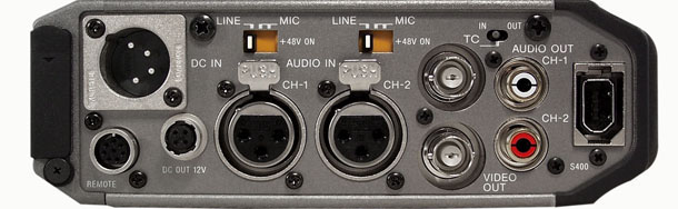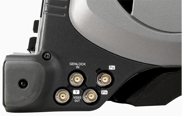 Der Camcorder bietet auch eine i.Link-Buchse (IEEE-1394, FireWire), über die das Gerät je nach Einstellung unterschiedliche Signale ausgeben und entgegen nehmen kann. So steht hier etwa auf Wunsch ein DV-Signal zur Verfügung, entweder wenn der Camcorder im DVCAM-Modus betrieben wird, oder ein von HD auf DV down-konvertiertes, digitales Signal. Über die gleiche Buchse nimmt der Camcorder Kontakt zu PCs und Schnittsystemen auf, denen er im File-Access-Mode (FAM) auf der Datenebene Zugriff auf die Audio-, Video- und Metadaten gewährt.