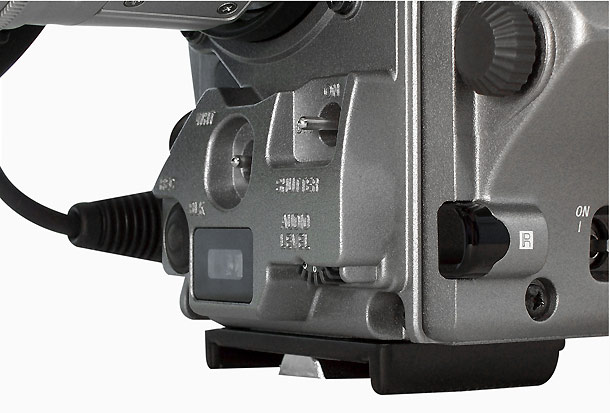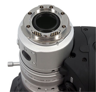 Schon in den 80er-Jahren gab es einen Anlauf, das Verbindungskabel zwischen Optik und Kamera zu eliminieren: In die Fassung der Kamera BVP-110 und den ersten Kamerakopf der Betacam-Baureihe baute der Hersteller auch Kontakte zur kabellosen Signalübertragung ein. Diese Idee wurde nun beim PDW-F330 wieder aufgegriffen und der Canon-Zoom nimmt über 14 Innenkontakte in der Bajonettfassung Verbindung zum Camcorder auf. Damit es keinen Kurzschluss gibt, sollte man den Camcorder also zum Objektivwechsel auf alle Fälle ausschalten.