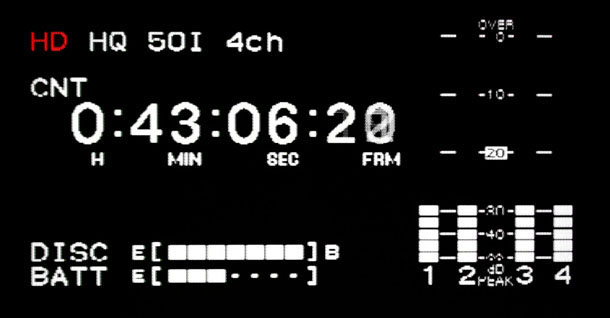 Die Formatierung der Disc dauert nur Sekunden und gegenüber Camcordern mit Bandlaufwerken hat man mit XDCAM HD keine Nachteile hinsichtlich der Schnelligkeit und Handhabung. In der besten Qualität die der F330 bietet, passen mindestens 65 Minuten HD-Bilder und 4 Tonkanäle auf die Scheibe. In der niedrigsten HD-Qualität sind es mindestens 122 Minuten. Wieso eigentlich mindestens? Weil XDCAM HD in der Qualitätsstufe HQ mit variabler Bildrate von maximal 35 Mbps arbeitet und im LP-Modus mit variabler Bitrate von maximal 18 Mbps: Wie viel Material tatsächlich auf die Scheibe passt, hängt also vom Bildinhalt ab, beziehungsweise davon, wie gut der Codec jeweils mit den Bildsignalen zurechtkommt, die man aufzeichnen will. Nur bei mittlerer Qualitätsstufe, im SP-Modus, wird mit konstanter Bildrate gespeichert, was zu exakt 87 Minuten Aufnahmezeit pro Disc führt, wenn mit vier Audiokanälen gearbeitet wird.