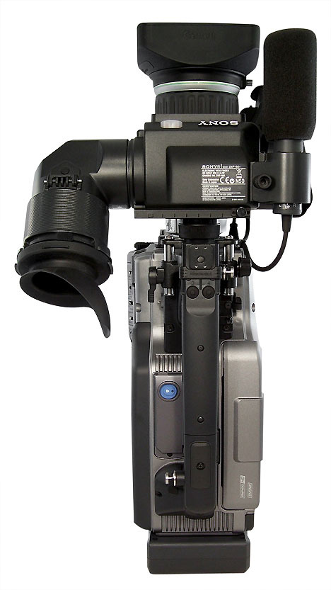Die Grundbedienungselemente sind am Gerät in bewährter Sony-Tradition angebracht. Wer etwa mit den weit verbreiteten Camcordern BVW-300/400 oder DVW-700 vertraut ist, wird sich sofort zurechtfinden. Zu den vier gewohnten Kippschaltern für Standby, Gain, Output und Weißabgleich kommt im Vergleich zu diesen älteren Camcordern im Hauptbedienfeld des F330 ein fünfter für Statusabfrage und Menü-Einblendung hinzu.