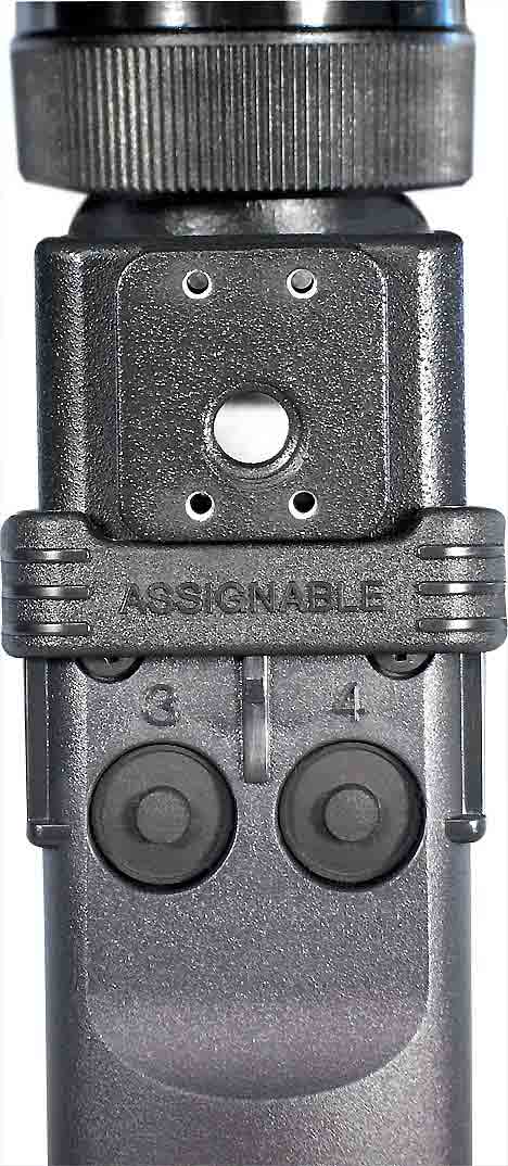 Zwei weitere, je nach Anwenderwunsch mit verschiedenen Funktionen belegbare Tasten finden sich oben im Tragegriff des F330.