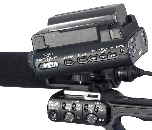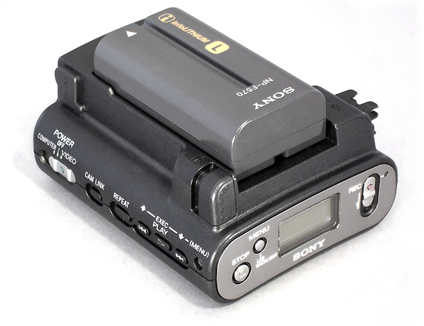 Der Festplatten-Recorder braucht einen Akku und wird einfach via FireWire-Kabel an den Camcorder angeschlossen – schon kann es losgehen mit der Aufzeichnung. Hierfür stehen zwei Modi zur Verfügung: Video und Computer.