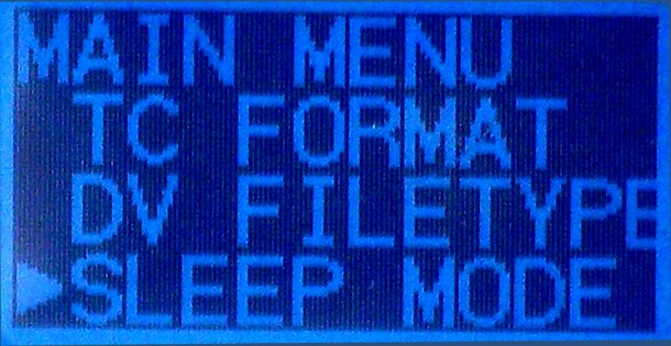 Das Menü selbst ist vergleichsweise einfach gestrickt und von jedem problemlos zu bedienen, der mit den Grundfunktionen eines Handys umgehen kann: Hier stellt man etwa ein, in welchem Format aufgezeichnet werden soll, welches Timecode-Format gewünscht ist oder welche Art von DV-File (AVI oder Raw DV). Der 3G-Sensor, der die Festplatte beim Herunterfallen des Diskrecorders schützen soll, lässt sich hier ebenso zuschalten, wie das Cache-Recording. Auch einen Energiesparmodus gibt es.