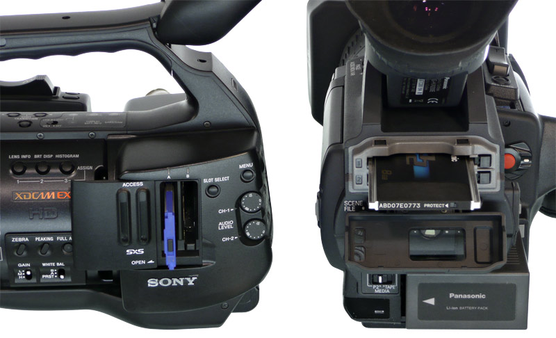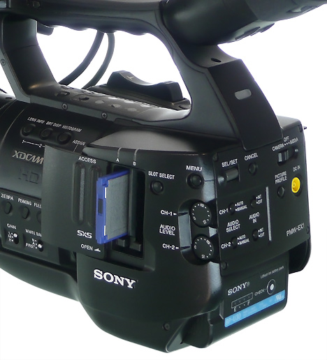 Sony verzichtet beim EX1 auf diese Zweigleisigkeit und reagiert nun mit diesem Camcorder auf den Trend hin zur Aufzeichnung auf Festspeicher. Offenbar war der langjährige Marktführer im Profi-Camcorder-Markt doch überrascht davon, wie schnell sich die Aufzeichnung auf Festspeicher am Markt zumindest in bestimmten Bereichen durchsetzen konnte — und reagierte deshalb mit Verzögerung. Der EX1 arbeitet mit SxS-Speicherkarten, der Z7 nutzt