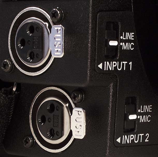 Beide Camcorder sind mit je zwei XLR-Buchsen für den Anschluss eines externen Mikrofons. Welche Positionierung dieser Buchsen sinnvoller ist, darüber kann man streiten. Die Tester bevorzugen hier die seitliche, tiefere Position der Buchsen beim HVX200 gegenüber den weit oben in Mikronähe angebrachten XLR-Anschlüssen des EX1.