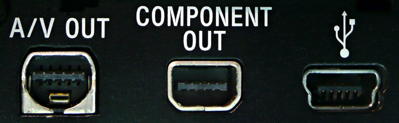 Beide Camcorder sind mit AV- und Komponenten-Buchsen bestückt, wobei Panasonic auch Cinch- und Hosiden-Buchsen bietet, während Sony bei diesen Anschlüssen auf Spezialbuchsen und Adapterkabel setzt.