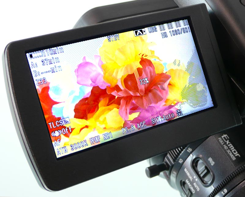 Bei den Ausstattungs- und Bedienelementen bietet der EX1 aus Sicht der Tester das modernere, bessere Konzept: So ist beispielweise das 16:9-Display des Sony-Camcorders sehr geschickt und flexibel unterhalb des Griffs integriert und lässt sich bequem aus- und einklappen. Das 4:3-Display des HVX200 ist dagegen klassisch an der linke Gehäuseseite untergebracht, wo es etliche Bedienelemente abdeckt und sich auch nicht so flexibel einstellen und nutzen lässt wie das Display des EX1 von Sony.