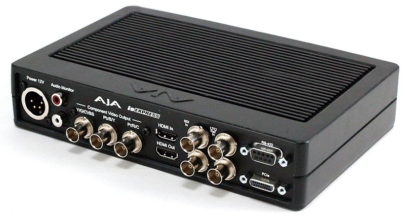 Eine weitere Neuheit stellt Aja mit dem portablen AV-Interface IO Express vor. Das Gerät ist sowohl mit PC (Windows XP / Vista) als auch Mac (OS X) verwendbar und sorgt dafür, dass sich zahlreiche Signale in den Rechner ein- und wieder ausspielen lassen. Die Verbindung zum Rechner erfolgt per Express-Card 34, wobei das Verbindungskabel 3 m lang ist. Optional ist eine PCIe-Karte zur Anbindung erhältlich, falls Express mit einer stationären Workstation anstelle eines Laptops benutzt wird. Nach Herstellerangaben eignet sich das Gerät beispielsweise als preisgünstige Monitorlösung bei file-basierten Workflows, die auf den ProRes-422-Codec, XDCAM HD oder DVCPROHD zurückgreifen.