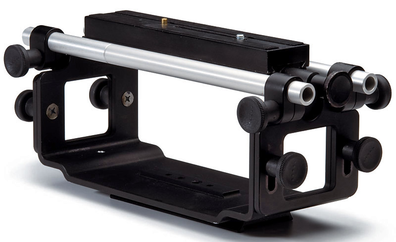 Das eigentliche Gerät ist eine kompakte Einheit, die auch zwischen Kamera und Stativ montiert werden kann. Hierfür ist das optionale »Exo-Skeleton« verfügbar, ein Schlitten, in dem sich Ki Pro unterbringen und unterhalb der Kamera montieren lässt.