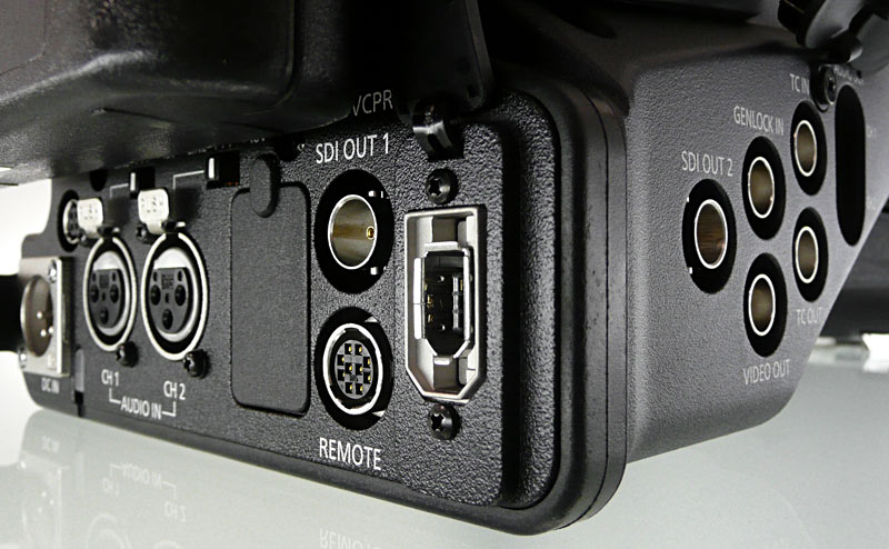 Einen analogen Komponentenausgang hat sich Panasonic beim HPX301 gespart, ansonsten ist der Camcorder aber mit Schnittstellen reich gesegnet, darunter SD/HD-SDI, FireWire/IEEE-1394. Über den FireWire-400-Anschluss kann der 301er im SD-Modus ein DV- oder DVCPRO-Signal ausgeben. Über eine <LEX>Genlock</LEX>-Buchse verfügt der Camcorder ebenfalls, er kann also auch von anderen Geräten aus getaktet und somit in einem Studioumfeld eingesetzt werden.