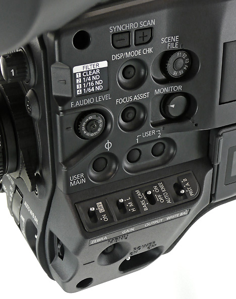 Um die Kombination des Camcorders mit Filmlook-Adaptern zu vereinfachen, hat Panasonic eine schaltbare Scan-Conversion eingebaut: Man kann das kopfstehende Bild, das die Filmlook-Adapter auf die Sensoren werfen, elektronisch spiegeln, damit es wieder in normaler Lage aufgezeichnet wird und man diese Umkehr nicht in der Postproduction vornehmen muss.