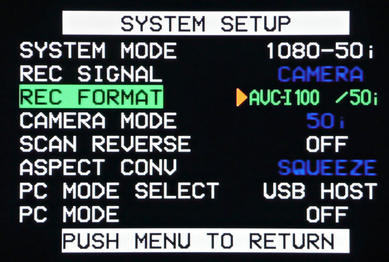 Einen Neustart verlangt der Camcorder aber — wie im Grunde genommen alle Multiformat-Camcorder — wenn er zwischen verschiedenen Bildrastern umgeschaltet wird. Das gilt für die Aufnahme wie für die Wiedergabe, wird aber im praktischen Betrieb sicher nicht so häufig vorkommen, wie im Testbetrieb, denn in der Regel wird man ja bestrebt sein, innerhalb einer Produktion immer möglichst im gleichen Format zu bleiben. Es stehen <LEX>720p</LEX> oder 1080i als Aufzeichnungsmodi zur Wahl (jeweils mit 50 und 60 Hz).
