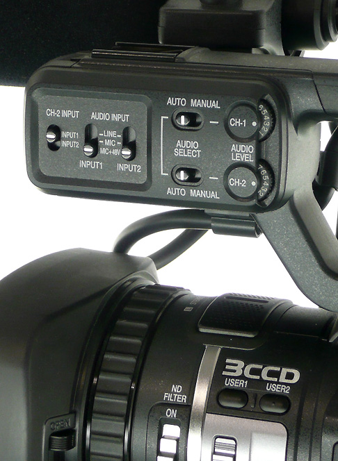 Im Audiobereich bietet der HM100 mit zwei XLR-Buchsen und zwei getrennten Pegelreglern im Audioteil des Handgriffs zwei Grundvoraussetzungen für den etwas professionelleren Umgang mit Originalton.