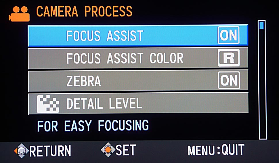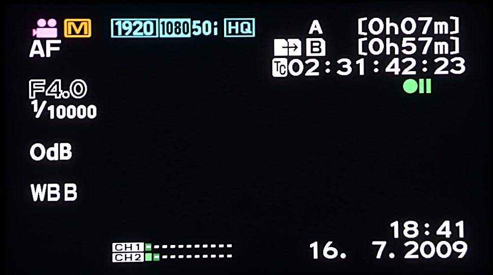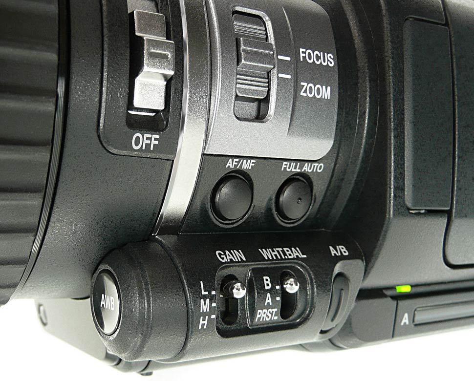 Einstellbarer Timecode, Zebra, Farbbalken, manueller Weißabgleich im direkten Zugriff, Kippschalter für Weißabgleichswerte und Verstärkung stammen ebenfalls aus dem Ausstattungsrepertoire professioneller Camcorder und helfen dem beruflichen Anwender, sich heimisch zu fühlen. Drei User-Tasten können mit verschiedenen Funktionen belegt werden.