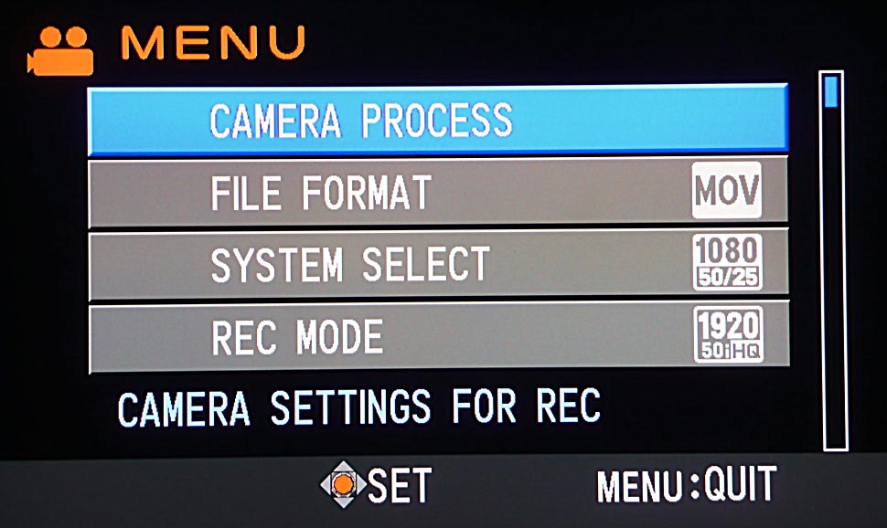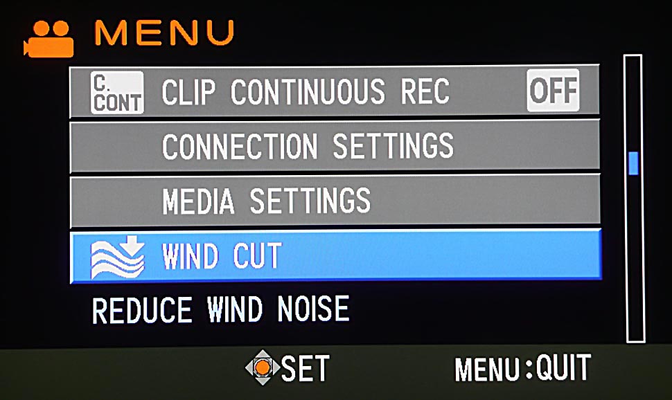 Insgesamt erschließt sich die Logik der Einstellmenüs nicht immer: Mehr als einmal mussten sich die Tester durch weite Teile des Menüs hangeln, um schließlich doch noch eine versteckte Funktion zu finden, die sie an anderer Stelle vermutet hatten. Weshalb etwa der Menüpunkt »Camera Settings« in dem viele für den Drehbetrieb wichtige Einstellmöglichkeiten zusammengefasst sind, an letzter Stelle der mehrseitigen Menüübersicht steht, das muss man nicht verstehen. Warum in diesem Untermenü die wichtigsten Funktionen wiederum ganz am Ende stehen, ist ebenfalls schwer nachvollziehbar. Dass sich etwa der Menüpunkt »Wind Cut« fürs Mikro dagegen auf der gleichen, obersten Menüebene befindet, wie die sehr viel umfassenderen Punkte Camera Process und Camera Settings, das trägt ebenfalls nicht zur Übersichtlichkeit bei.