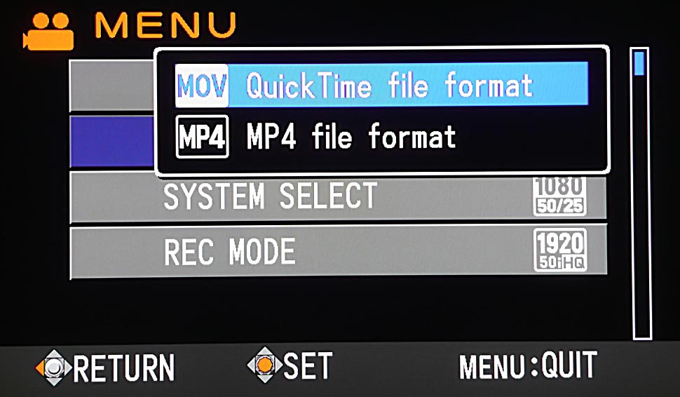 Bei den File-Formaten, in die diese Nutzdaten verpackt werden, stehen zwei Varianten zur Wahl: Quicktime (Mov) ist dabei die apple-kompatible Variante, alternativ dazu können die MPEG-2-Daten auch in MP4-Container verpackt werden. Wer mit beiden Dateitypen nichts anfangen kann, dem empfiehlt JVC das Freeware-Programm MP4toMPEG, um die Daten so zu wandeln, dass sie auch mit einer Vielzahl älterer Schnittprogramme verarbeitet werden können.