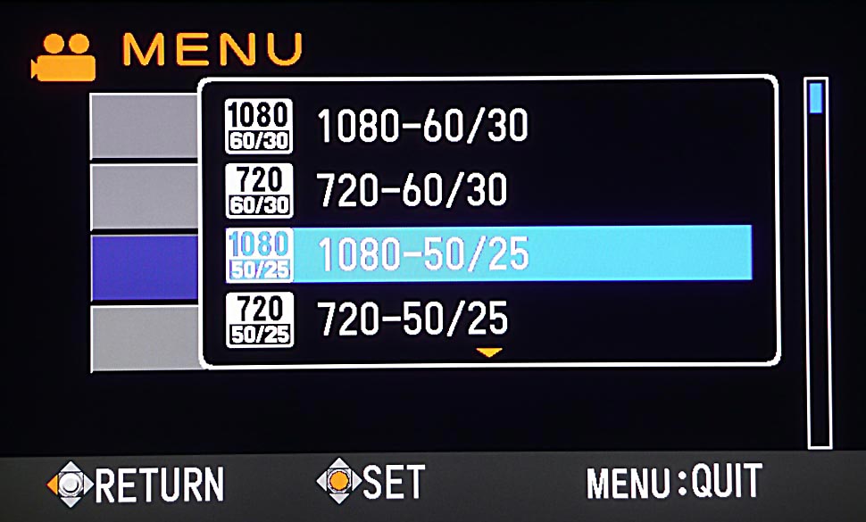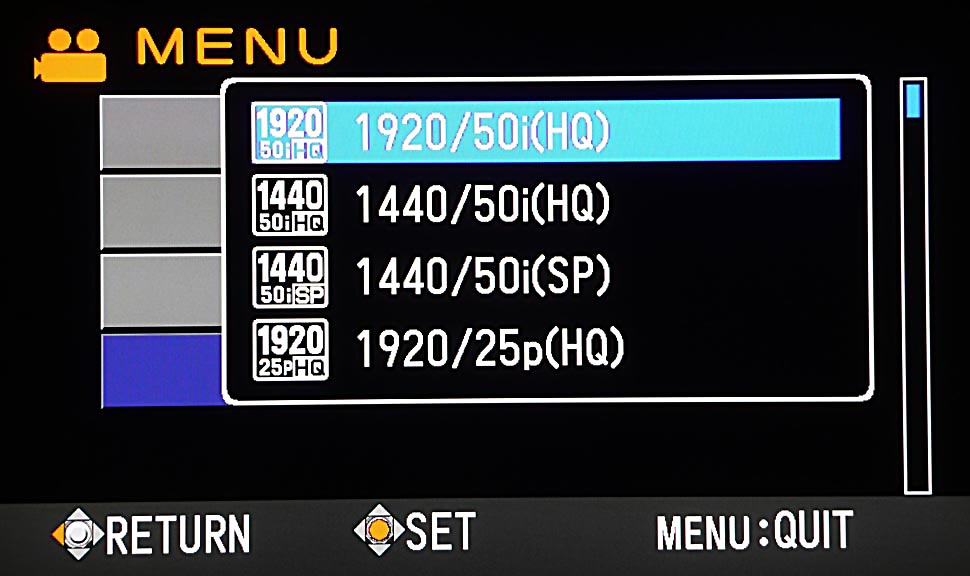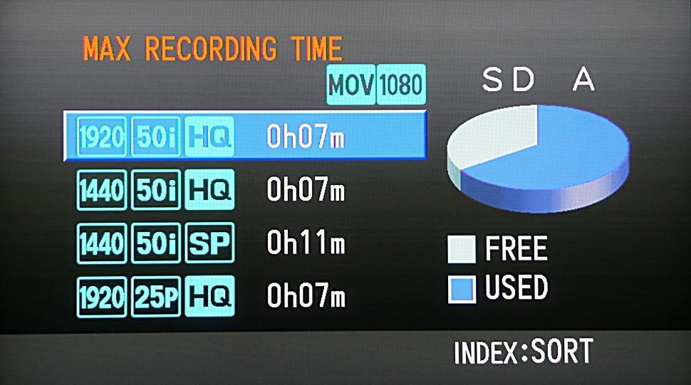 Speichern lassen sich die Bildfolgen im 1080er-Modus wahlweise mit 35 oder 25 Mbps, im 720er-Betrieb mit 35 oder 18,3 Mbps, jeweils als MPEG-2-Datenstrom mit Long-