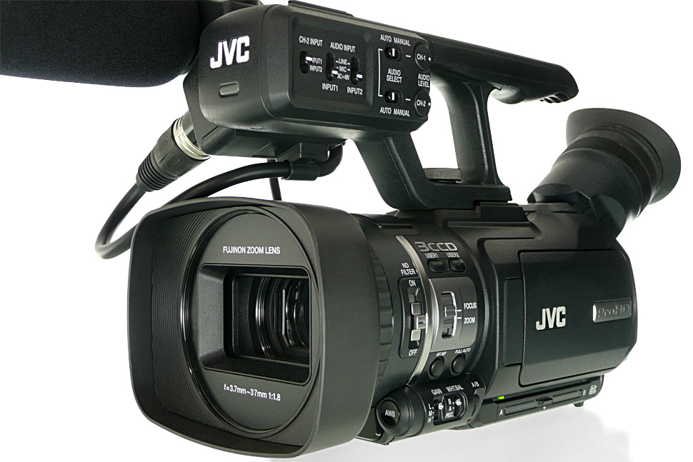 Mit dem GY-HM100 hat JVC einen sehr kompakten, bandlosen Camcorder mit Profianspruch entwickelt. Eine Besonderheit besteht darin, dass er auf die weit verbreiteten SD-Speicherkarten ein HD-Signal im vollen Raster von 1.080 x1.920 Bildpunkten so aufzeichnen kann, dass sich die Daten mit dem Schnittprogramm Final Cut Pro von Apple direkt verarbeiten lassen. Der neue, rund 1,3 kg schwere 3-Chip-Camcorder GY-HM100 bietet damit wichtige, positive Unterscheidungskriterien zu anderen Geräten seiner Klasse.
