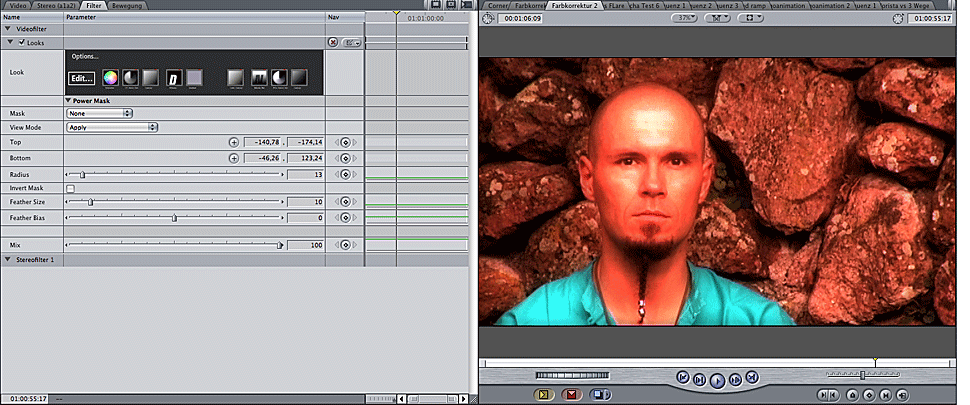 Magic Bullet Looks ist keine Farbkorrektur im klassischen Sinne, sondern ein Werkzeug zur Look-Gestaltung. Die vorhergehende Version konnte ausschließlich mit zahlreichen und auch schon wirklich guten Presets aufwarten. Magic Bullet Looks 1.1 bietet nun eine Benutzeroberfläche, um diese Looks auch nach eigenen Bedürfnissen modifizieren und kombinieren zu können. Nun wird der Look auch nicht im Viewer eingestellt, sondern innerhalb einer eigenen Benutzeroberfläche. Nur die Maskenfunktion, die mit der von Colorista identisch ist, wird im Viewer eingestellt.