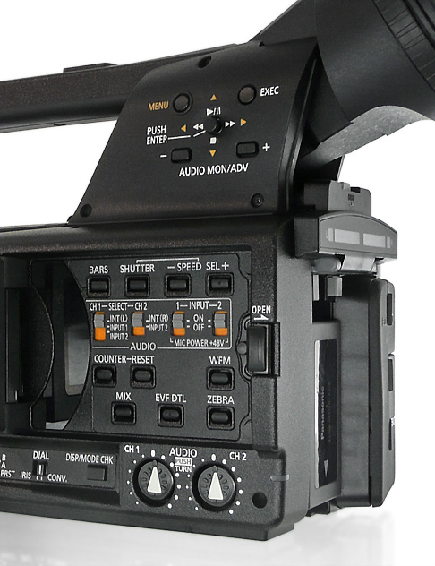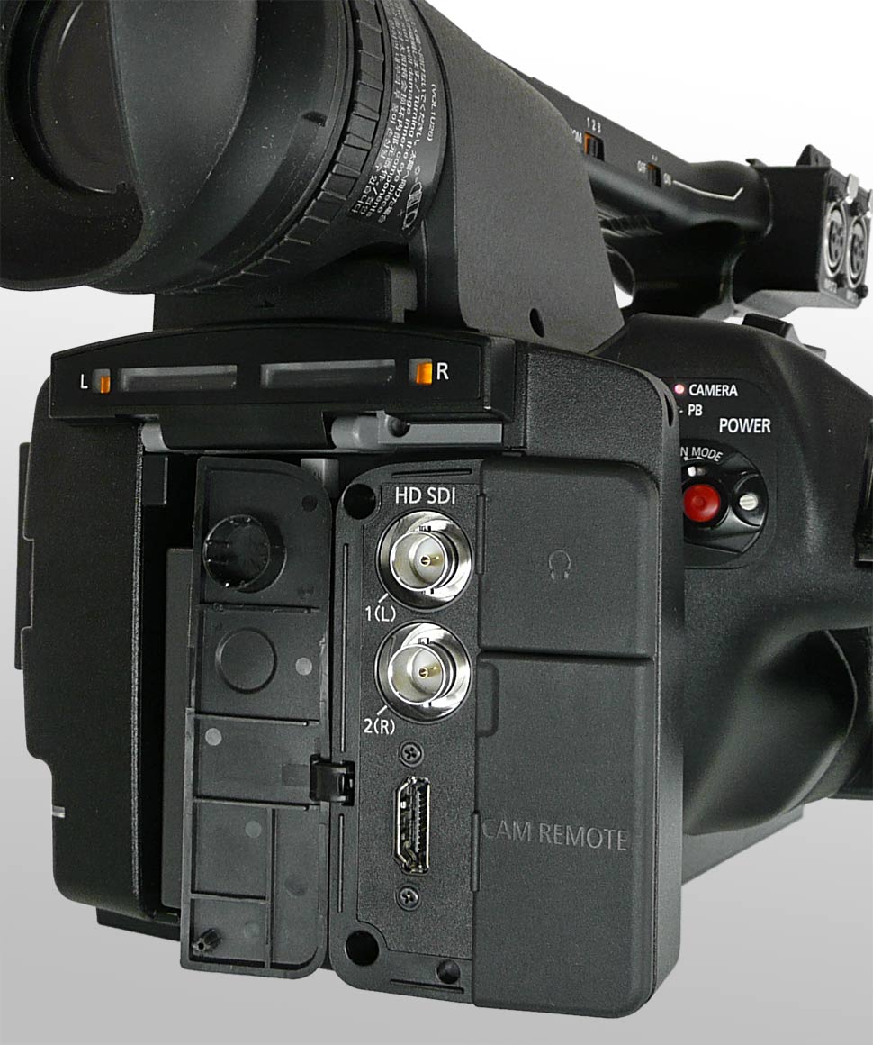 Tatsächlich hat der AG-3DA1 zwar einige Ähnlichkeit mit dem 151er, stellt sozusagen die Verdoppelung dieses Geräts innerhalb eines etwas größeren Gehäuses dar. Deshalb sind auch die wichtigsten Eckdaten identisch: Sensorgröße (1/4-Zoll), maximale Datenrate (24 Mbps) und vieles weitere. Die getrennten Bilder für das rechte und das linke Auge werden im Gerät separat behandelt: Das Licht fällt durch zwei Objektive auf zwei getrennte Sensorgruppen à drei CMOS-Chips, deren elektrische Signale einzeln weiterverarbeitet und dann separat gespeichert werden. Man nimmt also am Ende des Drehs eine SDHC-Speicherkarte mit den Bildern fürs rechte und eine mit den Bildern fürs linke Auge aus dem Camcorder. Beim Live-Betrieb gibt der Camcorder die beiden Bildsignale für rechtes und linkes Auge über zwei HD-SDI-Buchsen aus, zudem steht eine HDMI-1.4-Buchse zur Verfügung.