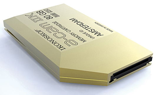 A-Cam Cartridge: der schwedische Hersteller Ikonoskop hat für seine digitale Kamera ein eigenes Speichermedium entwickelt, eine etwa scheckkartengroße, aber etwas dickere Speicherkarte. Mit einer Kapazität von 160 GB soll sie 32 Minuten Raw-Material aufzeichnen können (1.920 x 1.080, 25 fps) – bei einer Datenrate von bis zu 240 Mbps.