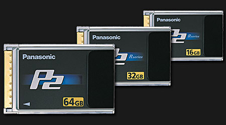 P2: P2 steht als Kürzel für Professional Plug-In Card, ein Speichermedium, das Panasonic speziell für den Einsatz in bandlosen Profi-Camcordern entwickelt hat. Jede P2-Karte kombiniert vier SD-Card-Speicherchips in einem PCMCIA-Gehäuse. Dadurch wird zumindest in der Theorie die vierfache Transfer- und Schreib-Datenrate erreicht, wie bei einer einzelnen SDHC-Karte: bis zu 640 Mbps Transferrate sind theoretisch möglich. Panasonic bietet zwei Baureihen von P2-Karten an: die A- und E-Serie mit etwas unterschiedlichen Spezifikationen und Preisen. Die größte P2-Karte speichert derzeit 64 GB. In DVCPROHD passen 64 Minuten Material auf diese P2-Card.