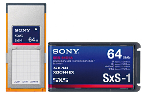 SxS: Speicherkarte für Profi-Camcorder von Sony. Die SxS-Speicherkarten passen in PC-Express-Slots an Laptops und PCs, sowie in bestimmte XDCAM-Geräte von Sony. Sony führte SxS als Speichermedium des Formats XDCAM EX (4:2:0, max. 35 Mbps) ein, mittlerweile gibt es aber auch einen Camcorder der mit höherer Datenrate von 50 Mbps in 4:2:2 auf SxS aufnehmen kann. Die maximale, theoretische Übertragungsrate lag bei der ersten Kartengeneration (SxS Pro) bei 800 Mbps. Die neuen SxS-Karten (SxS-1) bieten eine Übertragungsrate von 1,2 Gbps und können sowohl im UDF- wie im FAT-Modus arbeiten.