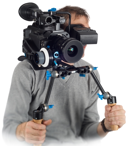 Eine optionale Schulterstütze lässt sich hinten auf die 15mm-Stützrohre aufschieben und verwandelt die Kamera in eine vollwertige Schulterkamera. Mit dem Denz Ultra Lightweight Handle System ist es möglich zusätzlich zwei Handgriffe individuell am PL54-Support anzubringen. Optional ist einer der Handgriffe mit einem Auslöser ausgestattet, der sowohl von Links- und Rechtshändern eingesetzt werden kann.